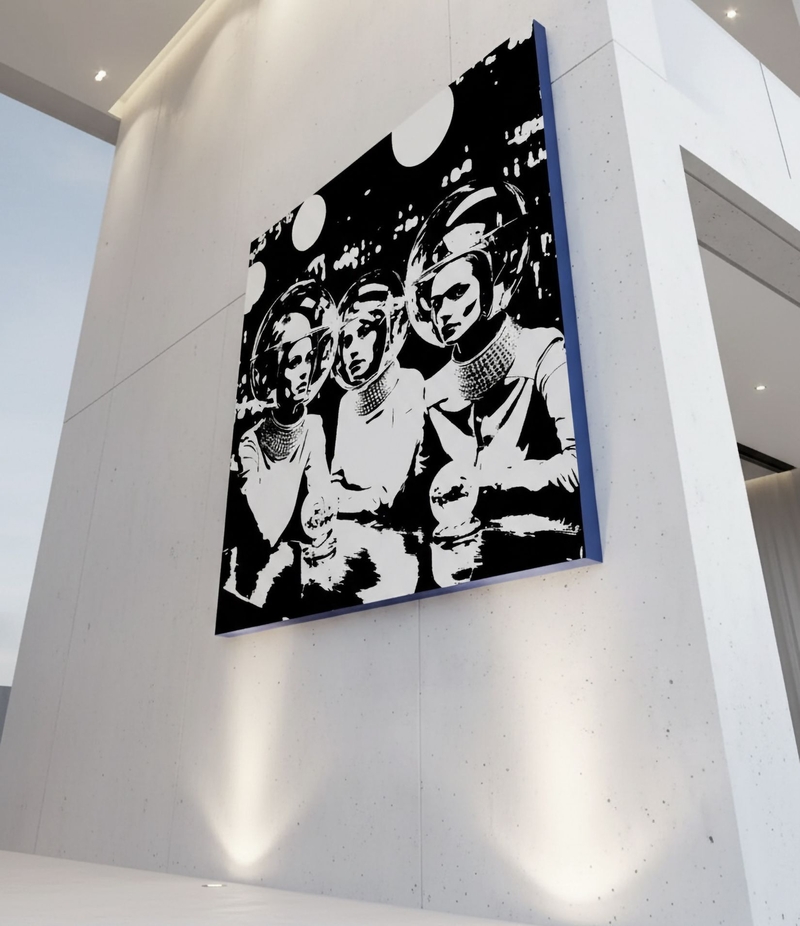 TRANSLATING REALITY. MY PROCESS BEGINS WITH CONSTRUCTION. I SELECT REAL PEOPLE, DESIGN, CUT AND SEW EACH GARMENT, BUILD COLOR AND SILHOUETTE, DO THE STYLING AND MAKE UP MYSELF. CLOTHING FUNCTIONS AS ARMOR – ARTICULATED SKIN THAT DEFINES PRESENCE. I PHOTOGRAPH MY MODELS NOT TO DOCUMENT THEM BUT TO DECODE THEM. THE CAMERA CAPTURES THE MEASURABLE DATA OF ISOLATION. ON CANVAS, I REDRAW AND REPAINT THOSE FINDINGS WITH ACRYLIC AND INK. EACH WORK ENDS BENEATH A UV SENSITIVE SKIN—A SECOND ATMOSPHERE THAT TRANSFORMS UNDER BLACKLIGHT. IT IS PROOF THAT WHAT WE CALL VISIBILITY IS ONLY TEMPORARY LIGHT.