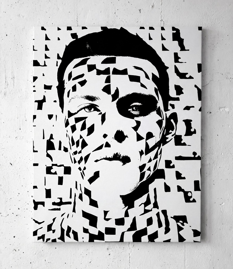 DAS ÜBERSETZEN DES ZEUGNISSES. ICH ARBEITE FOTOGRAFISCH – DIE KAMERA ALS INSTRUMENT DES ZUHÖRENS. JEDES PORTRÄT ENTSTEHT DURCH DAS ZUSAMMENSPIEL VON NÄHE UND RESPEKT. ICH FOTOGRAFIERE, STUDIERE LICHT, STRUKTUR, HALTUNG. DANACH ÜBERTRAGE ICH DAS BILD AUF LEINWAND, ARBEITE MIT ACRYL, PINSEL, FINGERN, TÜCHERN, BIS DAS GESICHT WIEDER EINE HAUT BEKOMMT. LINIEN WERDEN ZU ADERN, FARBE ZU ATEM. JEDE FERTIGE ARBEIT TRÄGT, WIE ALLE MEINE SERIEN, EINE UV SCHICHT.