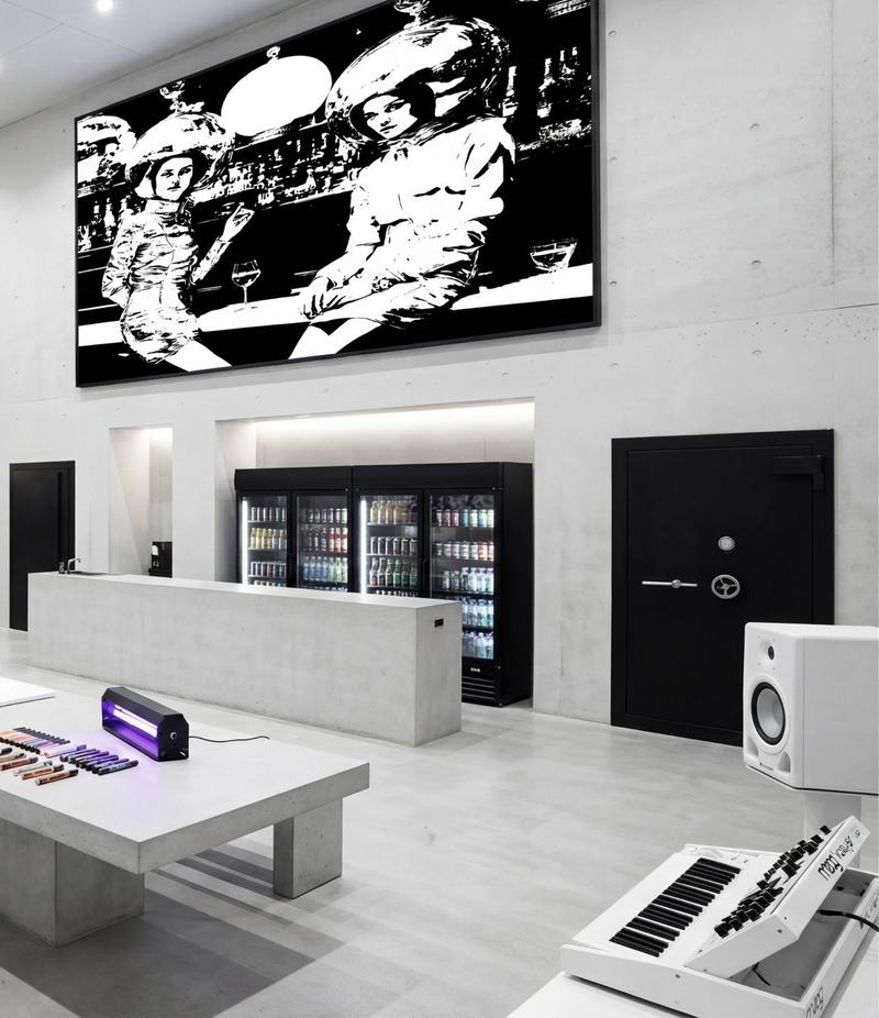 JAZZ, HIP HOP, THE GRIT OF STREET-STYLE FROM LONDON OR NEW YORK, AND A HANDSHAKE WITH HAUTE COUTURE FROM PARIS – THIS IS MY WORLD. MY MINDSET, TRANSLATED THROUGH FREQUENCIES, IS THE FEED OF MY MONOLITHS. I DO IT ALL MYSELF. I SCOUT MY INDIVIDUALS OR I CREATE THEM. I SEW THE CLOTHES. I CREATE THE SETTING. I AM THE ONE STITCHING THE NARRATIVE TOGETHER BEFORE THE FIRST STROKE EVEN TOUCHES THE CANVAS. BLACK-AND-WHITE WORKS. REDUCTION IS COMPRESSION.ACRYLIC, INK, 24K GOLD, CONCRETE. I AM IN LOVE WITH SUBSTANCE, WEIGHT, AND THE LONG-TERM – NO TRENDS! REALNESS & AUTARKY. SIMPLY PUT: DON’T FUCK WITH MY TIME! MY ART IS ENERGY. MY FRAME-SETTINGS CAGE IT. AND THE UV-VARNISH? A SUBTLE REMINDER THAT PERCEPTION IS NEVER COMPLETE.