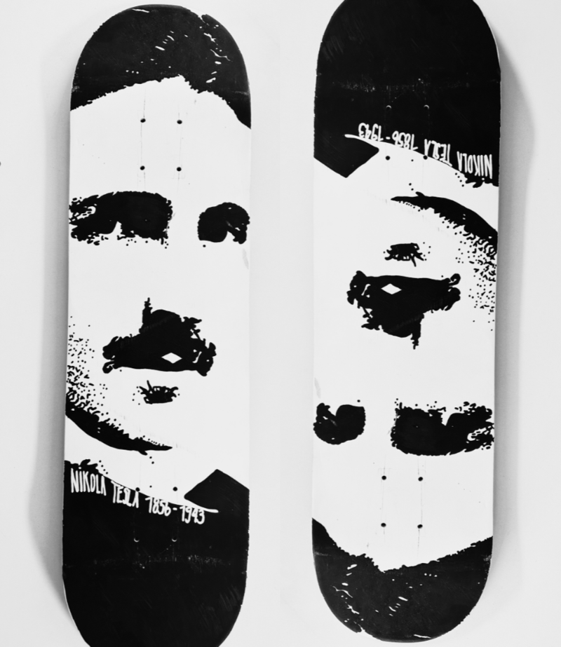 THE ARTWORK BY NIKOLA TESLA IS PART OF THE “STARS & HEROS” SERIES. NIKOLA TESLA WAS AN ENGINEERING RESEARCHER AND INVENTOR. HIS LIFE'S WORK IS CHARACTERIZED BY NUMEROUS INNOVATIONS IN THE FIELD OF ELECTRICAL ENGINEERING, ESPECIALLY ELECTRICAL ENERGY TECHNOLOGY, SUCH AS THE DEVELOPMENT OF THE SYSTEM FOR ELECTRICAL ENERGY TRANSMISSION KNOWN TODAY AS TWO-PHASE ALTERNATING CURRENT.